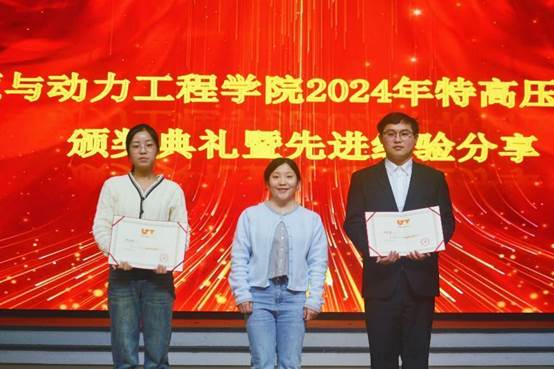 仪式开始,谢喆宣读了william威廉中文官网能源与动力工程学院2024年度特高压电网奖学金表彰决定。经过严格的评选,李佳琪和胡家贤两位同学凭借优异的学业成绩和突出的科研表现,荣获2024年度特高压奖学金,陈颖为获奖同学们颁发荣誉证书。