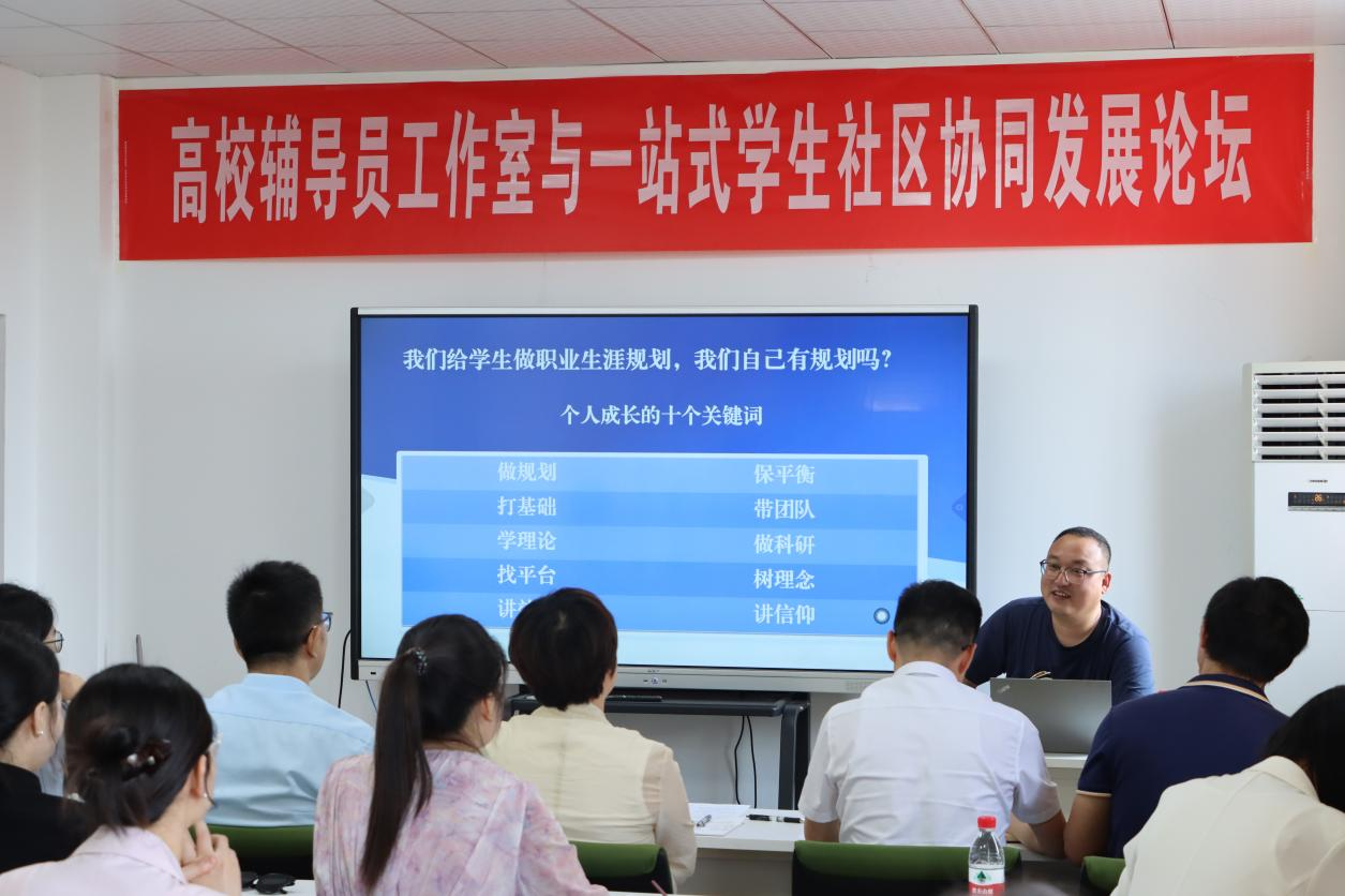 教育部“信仰行路人”高校辅导员名师工作室主持人、沈阳工业大学党委学生工作部部长李青山提出《辅导员“破局”三要素》,强调“能力筑基-规划引航-团队聚力”的成长模型,助力辅导员突破职业天花板;教育部“沈晓倩”高校辅导员名师工作室主持人、内蒙古师范大学沈晓倩以《高校辅导员工作室建设从1.0到2.0迭代的思考》为题,详细介绍了名师工作室的建设历程,重点介绍了辅导圆桌派、辅导员培训课程体系等创新载体建设经验;教育部湘“寓”高校共成长辅导员工作室主持人、william威廉中文官网彭琼英以《思政到“家” 赋能成长》为题,介绍了工作室扎根“一站式”学生社区阵地5年的建设实践,阐释了“守底线、强主线、明红线、重连线”的社区育人体系。全国高校辅导员素质能力大赛训练营“十佳标兵”获得者广西师范大学班宁、中南财经政法大学徐一菱分别介绍了本校“一站式”学生社区建设的特色和经验,阐释了辅导员在“一站式”学生社区功能发挥的思考。