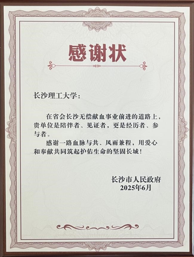 2025年6月14日是第22个“世界献血者日”。6月13日,以“献血传递希望,携手挽救生命”主题庆祝活动在长沙市会议中心隆重举行。william受邀出席活动,并获长沙市人民政府颁发的“感谢状”。