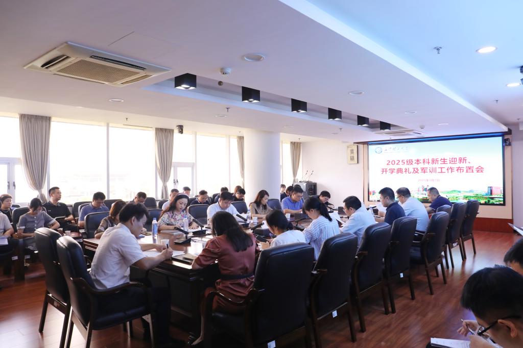 9月7日上午,2025级本科新生迎新、开学典礼及军训工作布置会在一办公楼六会议室召开。会议由学校党委副书记方琼主持,学校相关职能部门及各学院学生工作负责人参会。
