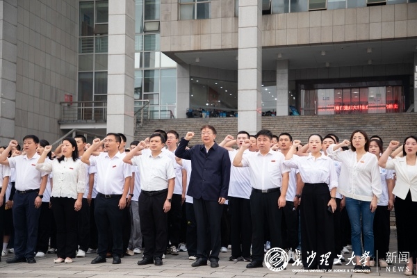 “中华民族的复兴,我们就是千千万!”现场,师生代表深情朗诵《致先辈》。全体师生高举右拳庄严宣誓,表达继承先辈遗志,赓续红色血脉,矢志爱国报国的坚定决心。