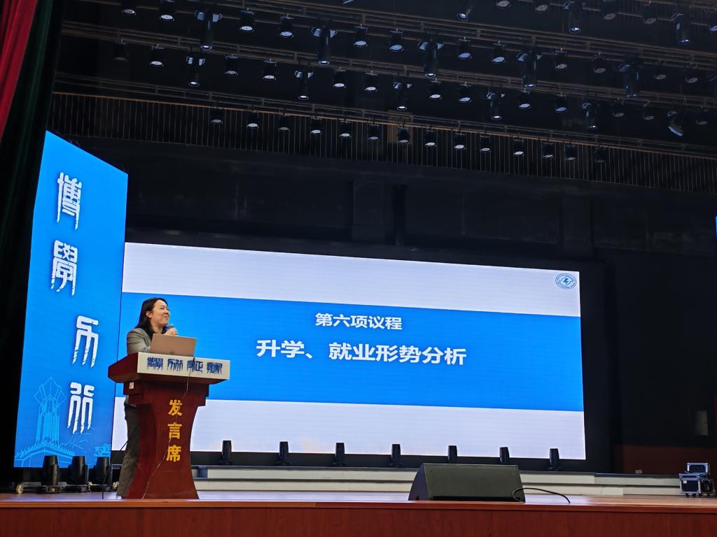会上,李逸奇围绕第一学期的学情分析、日常管理通报、转专业情况和学习资源分享等方面进行总结,对表现优异的同学予以表扬,同时也对存在不足的学生进行提醒,希望大家看到身边同学的努力,也相信每个人都有机会成为榜样。罗亦欧对保研政策、就业形势作了详细解读,引导同学们理性看待竞争压力,将目光聚焦于日常学习的积累,并对本学期即将开展的重点工作进行了展望,希望同学们珍惜时光,脚踏实地,积极进取。