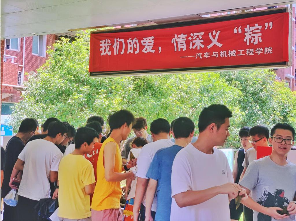 早早得到消息的同学们奔走相告,活动还未开始便排起了长长的队伍。一边喊着要“平安粽”,另一边要“无忧粽”……答对端午习俗问题的同学还可以多领一个奖励粽,同学们大脑飞速运转,争先恐后地回答“赛龙舟、饮雄黄酒、系五彩线、挂艾草”……一时间活动现场热闹非凡。品美味、忆习俗、尊传统,所有童年美好的回忆重现脑海,这是每个游子对家的记忆与思念。