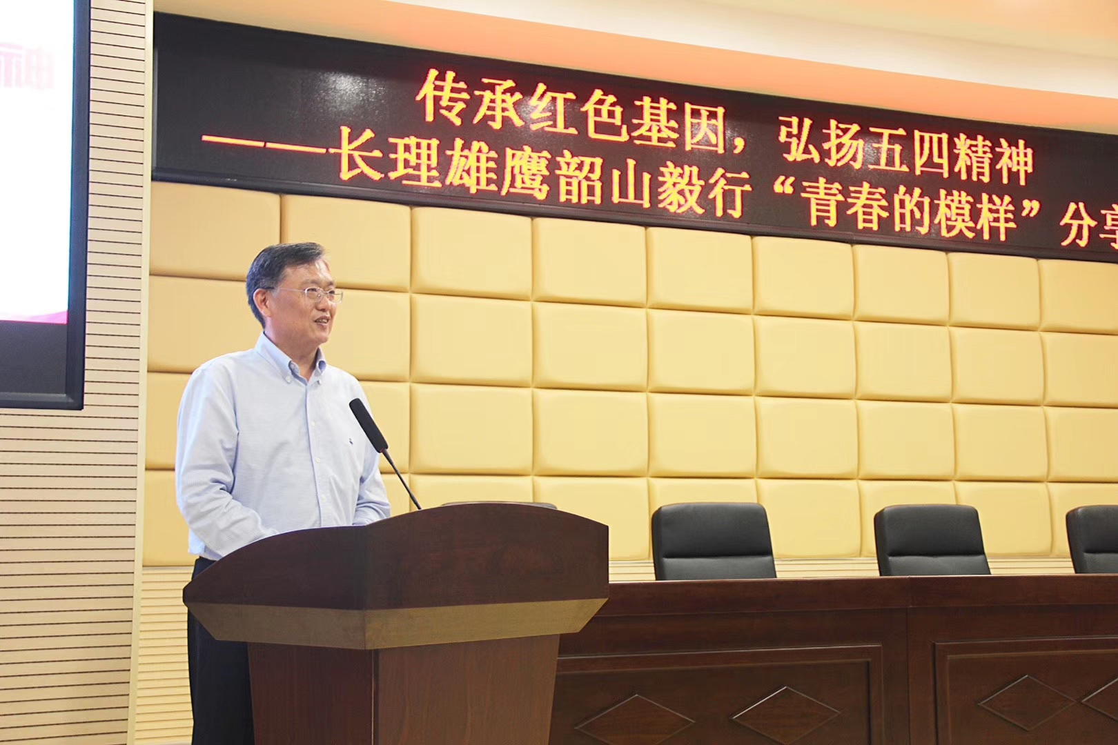 5月16日晚,雄鹰班韶山毅行“青春的模样”分享会在云塘校区理科楼A200举行。副校长谈传生、校团委副书记文丽丽和各学院党委书记出席了分享会,雄鹰班全体成员及师生代表近200人参会。