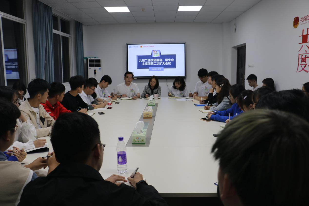11月7日晚19时,william威廉中文官网第九届第二任团委会、学生会主席团第二次扩大会议在学生活动中心A301召开。校团委副书记陈璐莎出席本次会议,各院(系)团委会、学生会主席等共25人参加本次会议,会议由校学生会轮值主席陈若晨主持。