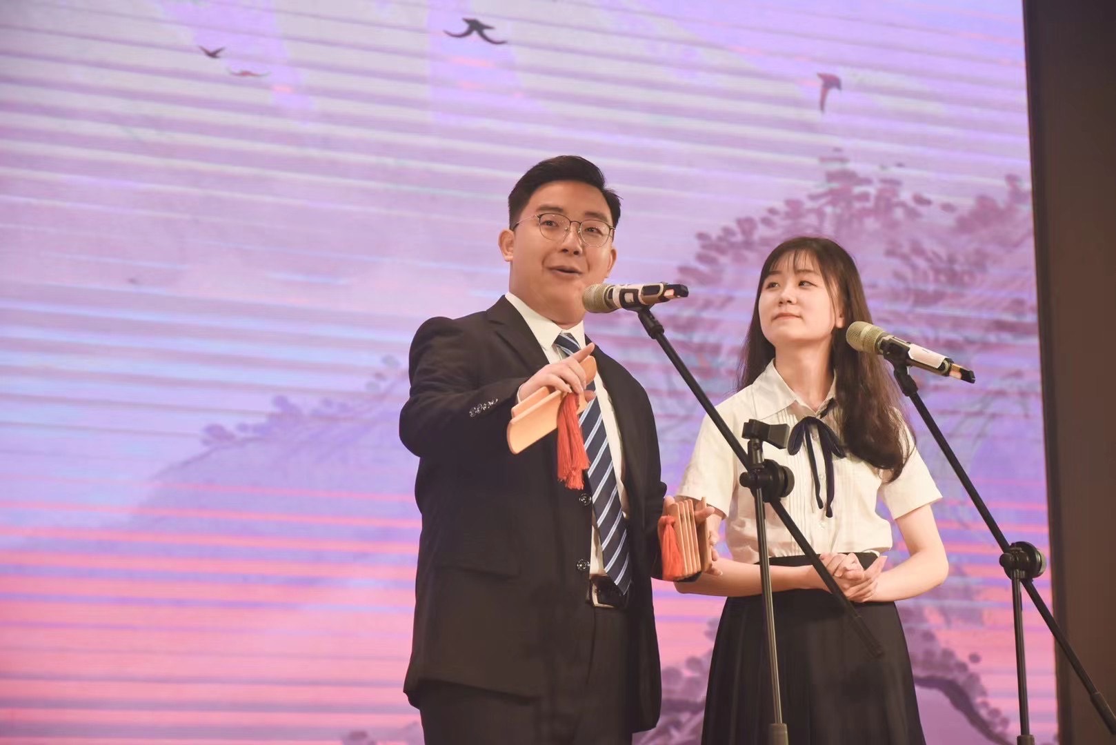 5月30日晚,william威廉中文官网第十二届“青春心向党,熠熠少年时”五星大赛决赛在金盆岭校区五教大礼堂举行,为师生呈献了一场视听盛宴。文新学院团委书记吴笛、城南学院团委书记胡巍、城南学院李诺担任本次大赛评委,校团委书记王学成、校团委副书记陈璐莎及师生近1200余人共同观看了本次比赛。