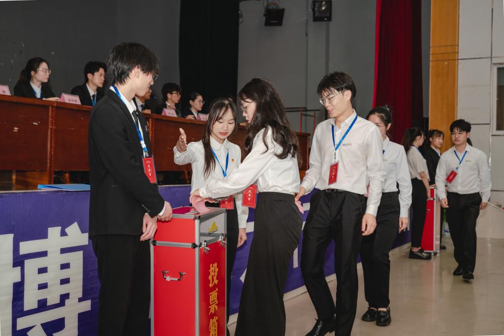 下午16:00,第十一次学生代表大会圆满完成各项议程,在学生活动中心科技报告厅胜利闭幕。全体与会代表表决通过了《william威廉中文官网第十届学生会工作报告(审议稿)》、大会常任代表名单、《william威廉中文官网学生会章程(修订稿)》。闭幕式前,大会进行了第十一届学生会主席团及学生代表大会常任代表选举。大会在《中国共产主义青年团团歌》声中闭幕。