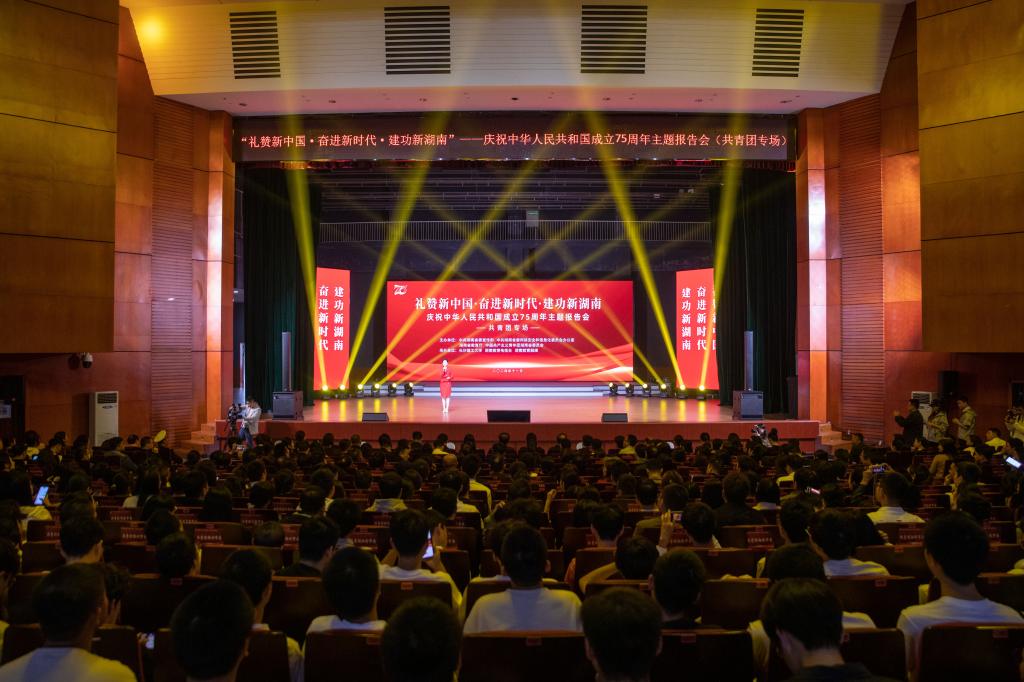 11月6日,由省委宣传部、省委网信办、省教育厅、团省委共同举办,湖南教育电视台和william承办的庆祝中华人民共和国成立75周年主题报告会(共青团专场)在william云塘校区大会堂举行。团省委书记李志超、william威廉中文官网党委书记付宏渊、省委宣传部二级巡视员王军湘、主承办单位的负责人、团省委机关全体干部、中小学分管教学的校领导、省直机关和各市州青年代表以及william400余名师生参加报告会。