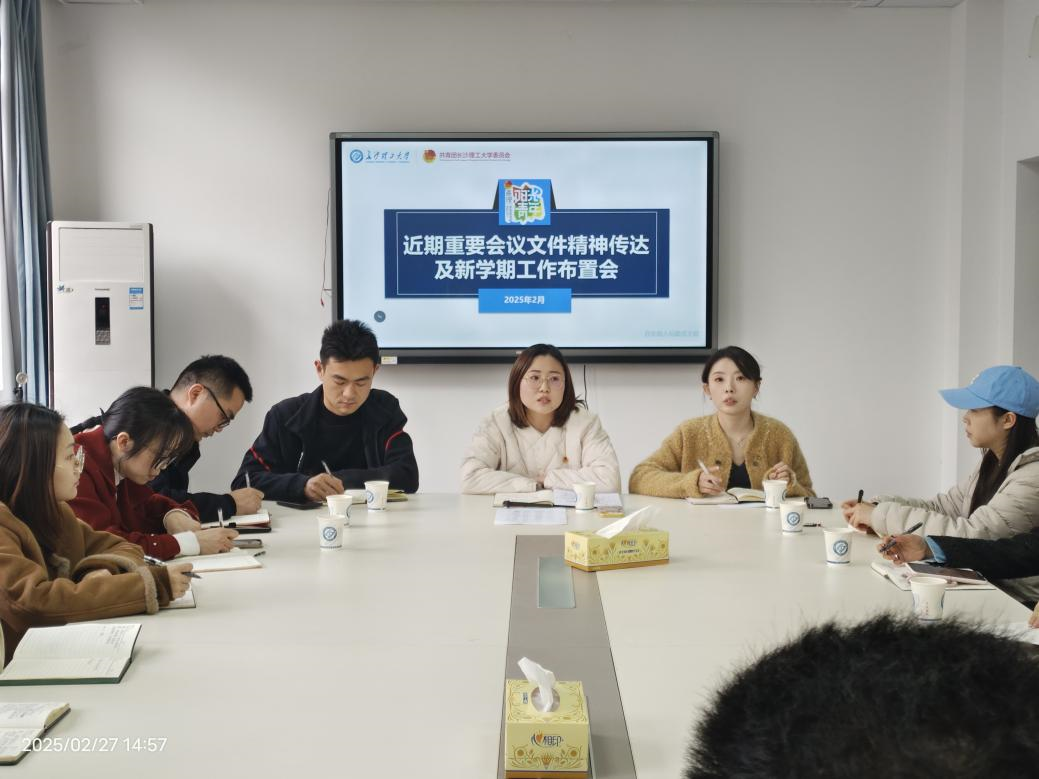 2月27日,校团委在云塘校区学活A301召开新学期工作例会,校团委副书记陈璐莎、王微,挂职副书记孙辰昊、兼职副书记陈鑫林出席会议,各学院团委书记与会,会议由陈璐莎主持。
