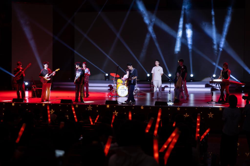 木心有点狠队以一首《石家庄人》叩击观众心扉,唱出平凡人扎根时代的倔强,Roar乐队《Roar Own》迸发挣脱桎梏的呐喊,曹馨月《蓝色香巴拉》带领观众跟随葫芦丝的音符跃动,沉浸于藏族的民俗风情;歌星曾颖婷《阿刁》以嘹亮歌声勾勒高原少女的坚韧,臻有实利队一曲《嘉宾》温柔的旋律讲述着青春里酸涩又温暖的细腻情感,在黄子熠《我爱你》的歌声中感受勇敢又炽热的纯粹情感,李想《Memory》经典旋律叩响回忆之门,流淌出时光的欢笑与泪水;演绎之星表演大享队的《再见老师》让诙谐课堂互动与催泪告别场景交织,致敬三尺讲台的奉献,叶栩婧《越剧<劝黛>》唱腔婉转,以传统越剧细腻刻画林黛玉的孤高敏感。有请下一队的《如此体检》“五分钟体检,两小时欢乐”引爆笑浪;舞星HTH《The Chase》精准卡点,展示利落舞步,你还爱我对不队《Ruff off》街舞动作张扬不羁,腾空翻转引爆全场尖叫,刘美萱《AIR》用舞蹈疗愈疲惫心灵;Savage Vibe《阿拉松》将原始力量与狂野节奏交织,声韵之星贾思琦、刘静雨、何越懿《她的声音》借配音表演展现女性声音的多元魅力,诠释坚韧与细腻并存的女性力量,最后由阳光艺术团礼模队带来走秀《仲夏潮汐》,将大赛现场氛围推向高潮。