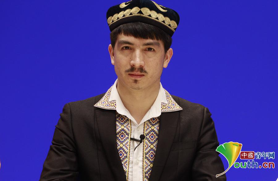 图为访谈现场,诚实守信青年阿迪力·麦麦提吐热。中国青年网记者 李延兵 摄