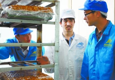 6月2日,端午节,宁乡县经开区妙盛中小企业孵化港的买买提切糕店一派忙碌,加工车间有的在切糕,有的在包装,有的在寄运。“网上有10万多个、价值500万元的订单等待发货,每天还新进订单四五千个。”切糕店主人之一的阿迪力·买买提吐热兴奋地对前来采访的记者说。