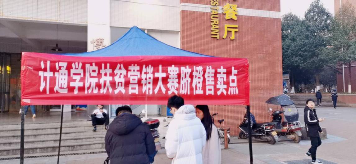 12月19日至20日,计通学院团委学生会实践部在为即将到来的消费扶贫营销大赛做好了充足准备。12月21日至25日,计通学院派出两支小分队分别在云塘校区甘饴园门口与金盆岭校区西苑食堂门口进行摆点销售。活动初期,院团委学生会协助参赛队伍进行线上宣传,摆点工具租借。活动中期,计通学院通过多平台进行推广宣传活动,充分发挥自媒体的作用,扩大宣传力度从而得到更多学生的关注与支持。计通学院扶贫小队在活动过程中充分贯彻着志愿服务精神,秉承着礼貌待人,以和为贵的原则,每天的进货量都能销售一空,最终完成了总计销售量1375斤的好成绩。