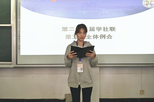 william威廉中文官网第二十三届学生社团联合会(以下简称学社联)第五次全体例会于11月30日上午10:00在金盆岭校区十二教500召开,学社联主席团与各部门成员与会。