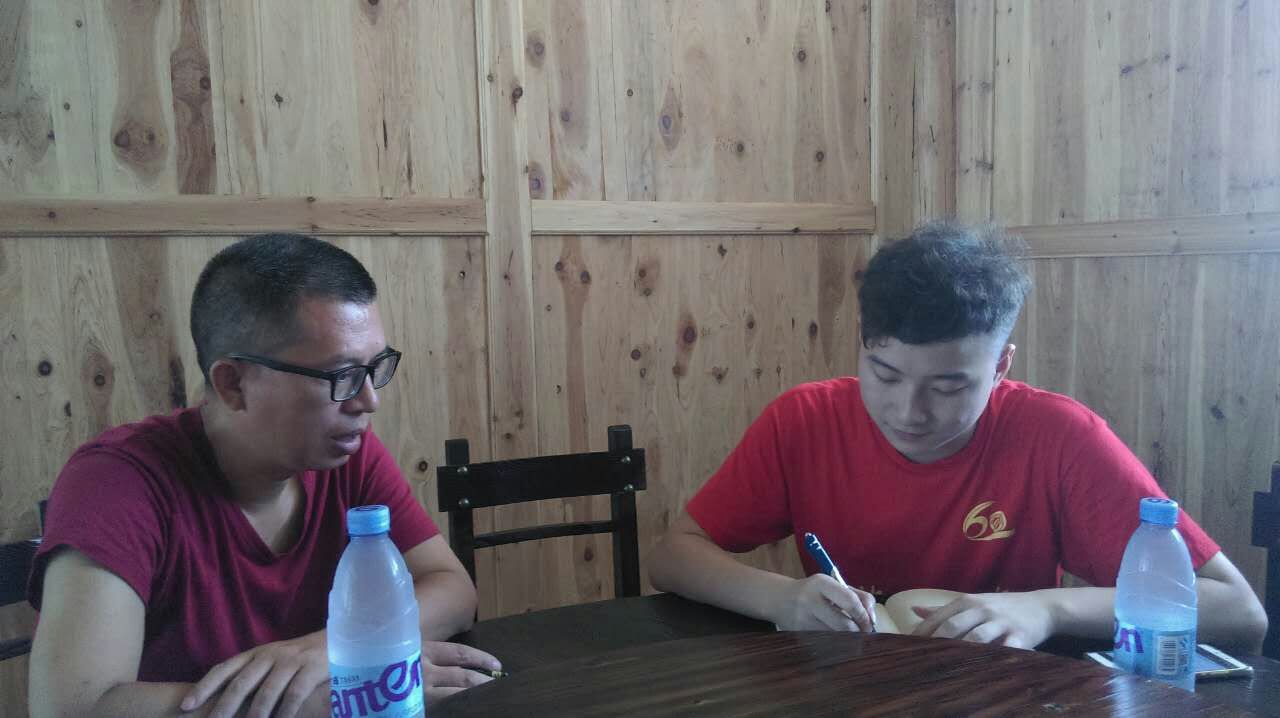 随后,志愿者采访了驻地苏学愚副教授了解坪溪整体情况,以便完善网站信息,指导之后的调研工作。经了解,坪溪村基本村情地处山区,地少山多,过去交通闭塞。如今紧邻沪昆高铁溆浦南站,区位优势展现出来。村中有近三分之一的贫困居民,扶贫办针对本村基本村情制定了一系列的扶贫计划。其中“三化一改”作为扶贫政策的核心。“三化一改”包括净化、绿化、淳化工程和住房改造工程。采访过程中,苏教授畅谈坪溪“三化一改”工程,和志愿者们分享扶贫办工作点滴,小到一家一户的垃圾清理,大到村子的风貌改造,志愿者们震惊于坪溪村的改变,新农村建设蒸蒸日上,欣欣向荣。