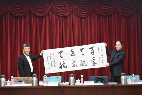 总结汇报及交流座谈会的召开恰逢中交天津航道局有限公司120年华诞,会议正式开始前,黄立宏代表学校,水利学院常务副院长胡旭跃代表学院向中交天津航道局有限公司赠送了“百年天航 世界天航”书法礼品和湘绣礼品。