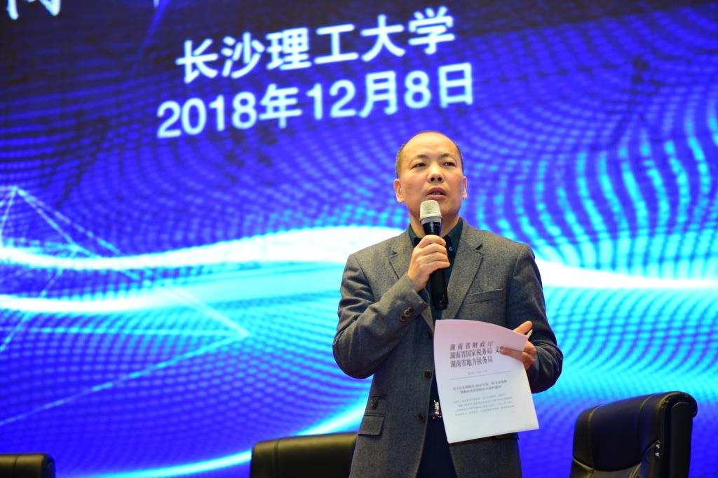 湖南省交通厅副厅长钱俊君以“湖南交通现状与展望”为题,介绍了湖南省的交通现实基础,“一带一部”地理区位、“两纵三横“的交通区位,分析了湖南交通的现实基础,指出重新定位下的湖南,具备打造全国综合交通枢纽得天独厚的优势,我省当前交通方面的发展重点是:加快完善综合交通运输网络、加快完善交通枢纽布局、推进智慧交通建设、推动交通绿色发展。