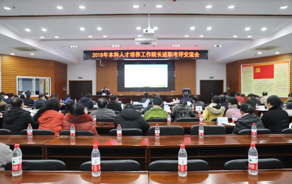 12月27日下午,学校在一办九楼会议室召开了2018年本科人才培养工作院长述职考评交流会。校长曹一家,副校长蒋昌波,各学院院长,相关职能部门负责人,校督导团团长、组长等34人担任汇报会评委;学院教学副院长、教务办主任,教务处、评估中心科以上人员参加了会议。