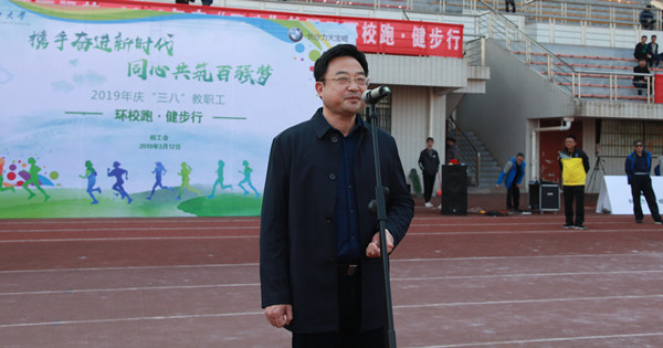 3月12日下午,春光明媚,william庆“三八”教职工环校跑(健步行)活动在云塘校区举行,来自全校25个分工会,近1000名教职工自愿报名参加活动。校党委副书记兼工会主席邹宏如出席环校跑开幕式并讲话。