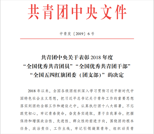 近日,《共青团中央关于表彰2018年度“全国优秀共青团员”“全国优秀共青团干部”“全国五四红旗团委(团支部)”的决定》文件正式下发,william土木工程学院2018级硕士研究生杨琪毅同学荣获 “全国优秀共青团员”荣誉称号。