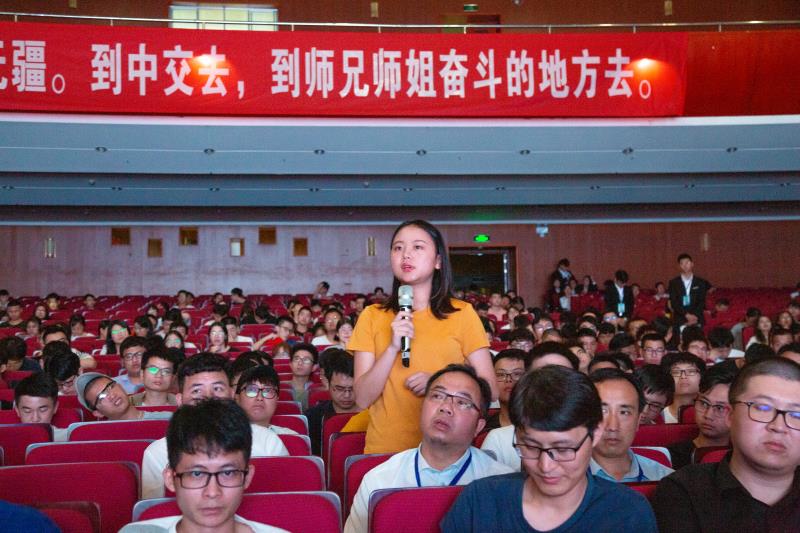 王涛从企业的历史文化、强大实力、战略定位、全球化业务与人才培养五个方面进行宣讲,他呼吁长理学子携手中交,共建未来,并在交流环节回答了学生的提问。