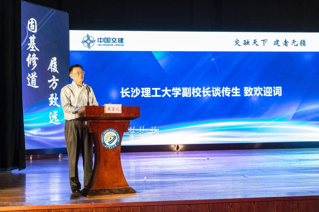吴维忠代表承办单位致辞,他简要介绍了中国交通建设股份有限公司基本情况,并号召广大毕业生积极加入中国交通建设股份有限公司建功立业。