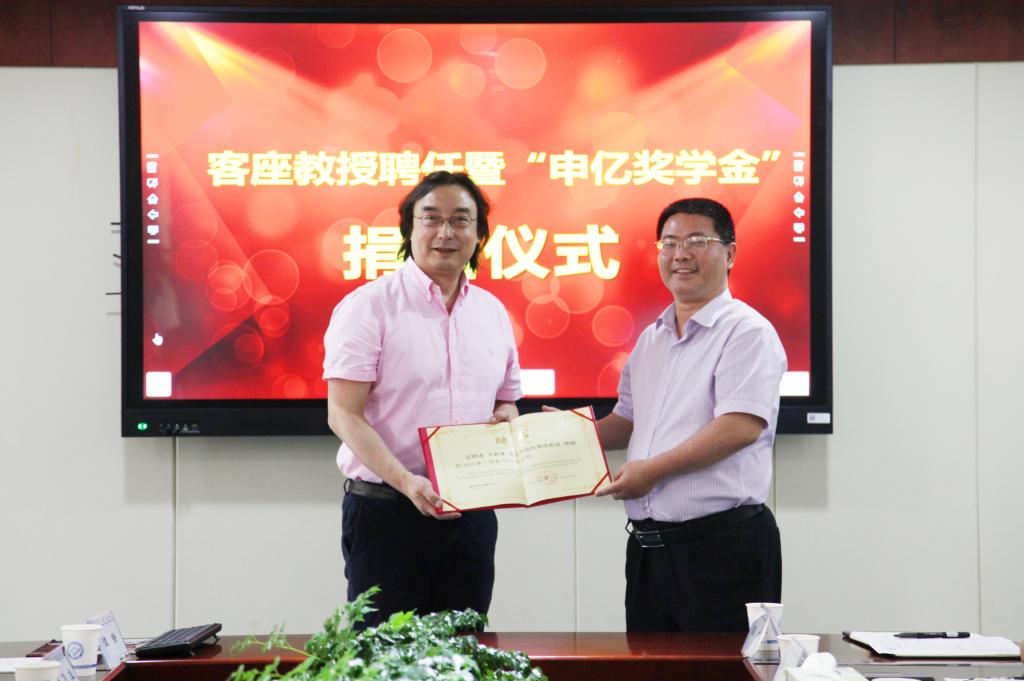 聘任仪式结束后,成果转化中心副主任李岳林简要介绍了“申亿奖学金”的设立及实施办法,曹一家代表学校接受了奖学金捐赠。