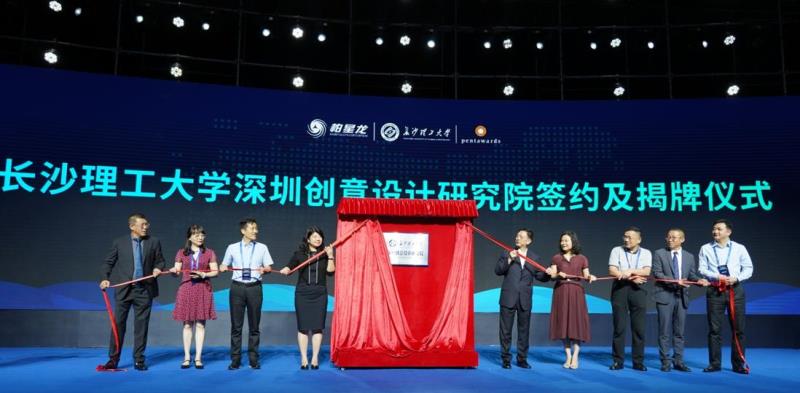 随后,在深圳市罗湖区领导、学校领导、深圳柏星龙公司领导的见证下,举行“william威廉中文官网深圳创意设计研究院”揭牌仪式,这标志着学校对接深圳“世界设计之都”落地平台的建立,为人才培养的政校企合作打下基础,为进一步开展多层次、多形式、多领域的合作、校企资源的有机结合和优化配置搭建平台。