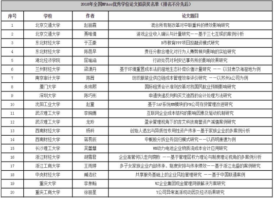 附:2018年全国MPAcc优秀学位论文拟获奖名单(排名不分先后)