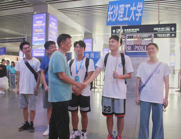 9月7日下午,校党委书记付宏渊、副校长谈传生在党政办、学工部、国资处、后勤处、保卫处、后勤集团负责人和天心区金盆岭派出所所长李省城的陪同下,看望2019级新生及家长,慰问服务在一线的迎新工作人员、志愿者。