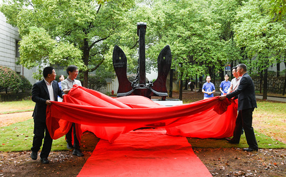 本次返校,校友们在他们当年毕业实习地广东湛江铸造了一座以锚为主题的雕塑捐赠给母校。雕塑取名为“启航”,寓意为“锚定初心情阔远,奋楫扬帆再启航”。