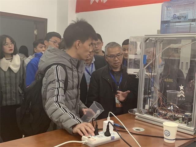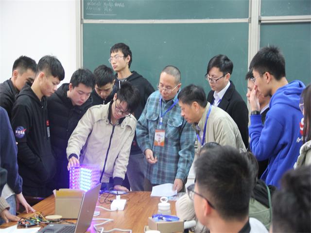 开幕式结束后,全体评委、嘉宾和参赛队伍在理科楼c区一楼合影留念,随后前往各赛区观看作品现场展示。