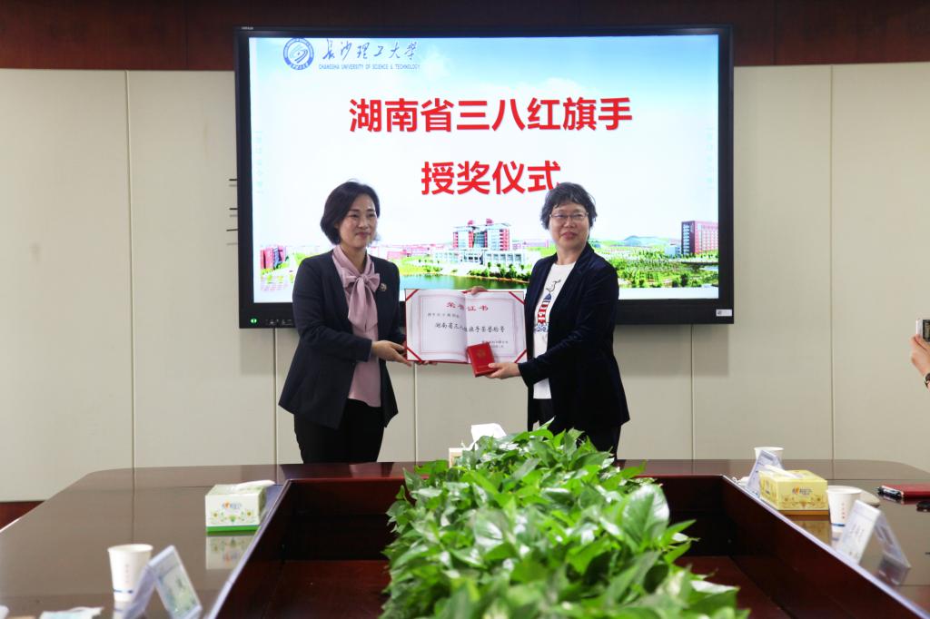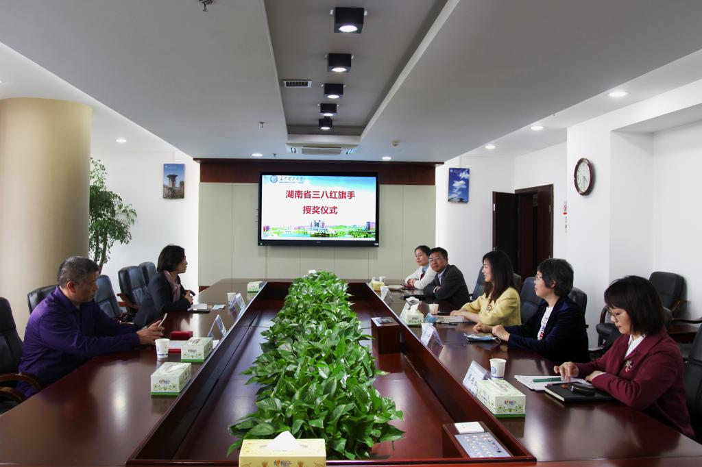 近日,湖南省妇联副主席方琼(挂职)、省妇联宣传部三级调研员刘伟东一行,专程为湖南省“三八红旗手”获奖者、william土木工程学院刘小燕教授授奖。党政办,校工会,土木工程学院主要负责人参加会议。