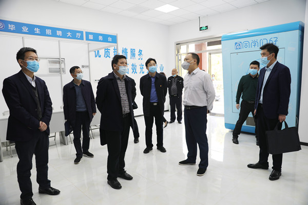 会后,王玉清一行到防控办、食堂、校医院、就业一站式服务大厅等地开展了现场督查。
