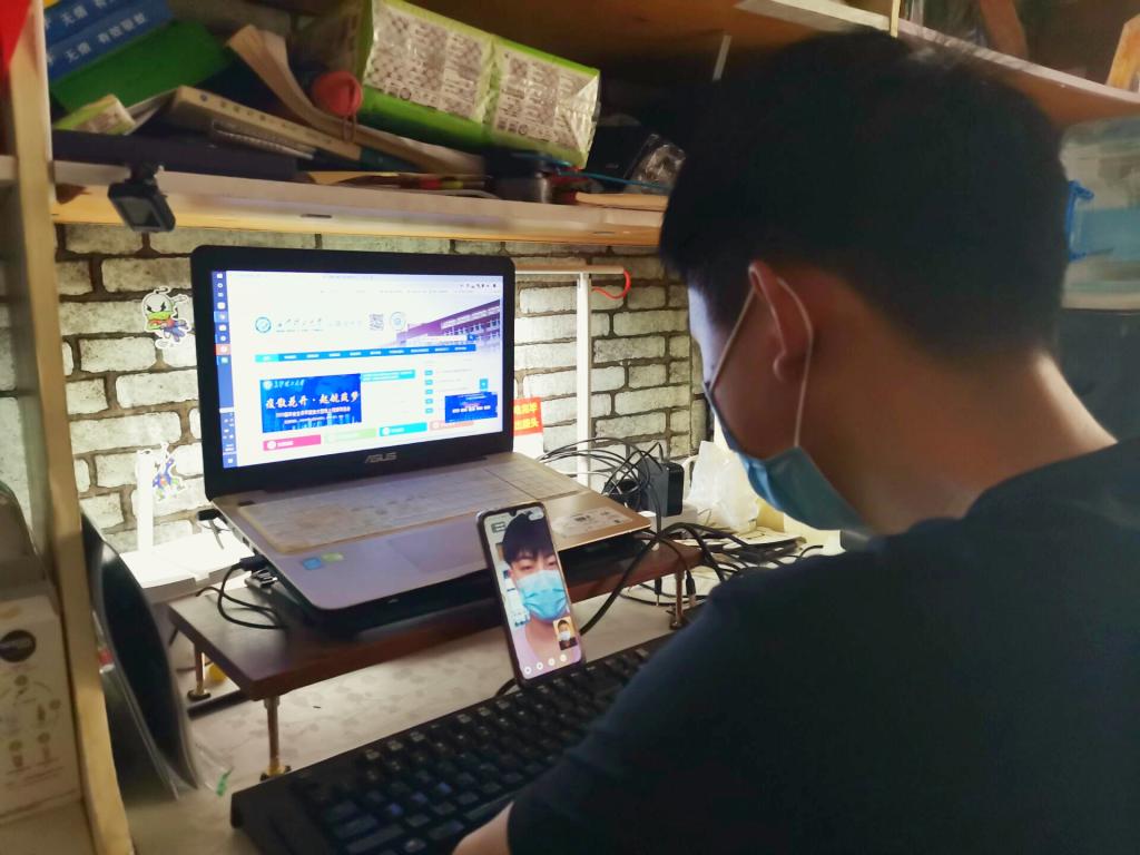 图为2020届毕业生在寝室参加线上双选会