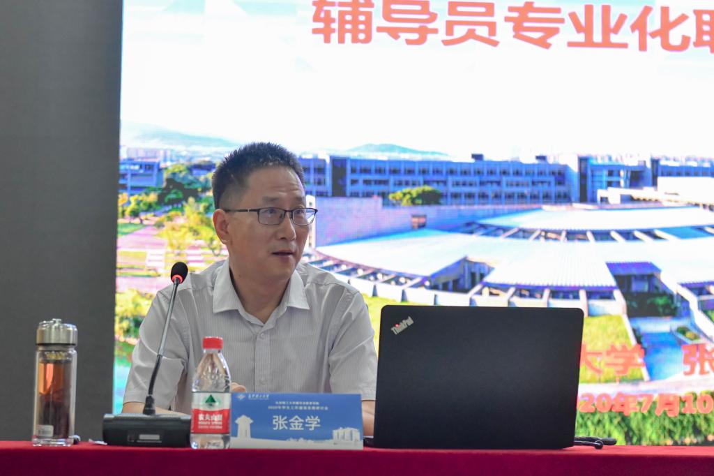 为期两天的研讨会中,7月10日上午,“最美辅导员”、中南大学张金学应邀作了“辅导员专业化职业化发展”主题报告,围绕辅导员制度的发展历程、辅导员双线晋升制度设计、新时代思想政治教育主抓方向、辅导员年度人物特色简析四个方面进行深刻阐述。湖南省委党校科社教研部副主任王蔚教授以“如何提升高效执行力”为主题,结合实际案例深入浅出地解析了为什么要有执行力、什么是执行力、当前组织执行力存在的问题以及作为辅导员如何提高执行力。