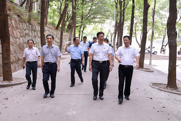 8月23日下午,学校党委书记付宏渊、校长曹一家、副校长杨伟军在防控办、学工部(处)、教务处、资产处、基建处、保卫处、后勤中心等部门及学院负责人的陪同下,检查了金盆岭校区疫情防控和开学情况。