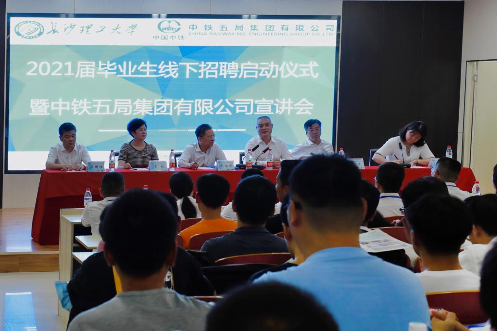 启动仪式由招生就业处处长曹瑛主持,近400名2021届毕业生和中铁五局集团有限公司招聘组、相关学院党委副书记、辅导员参加。启动仪式后,中铁五局集团旗下企业在就业“一站式”服务大厅举行了双选及面试洽谈。