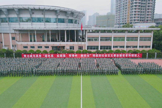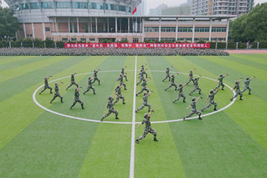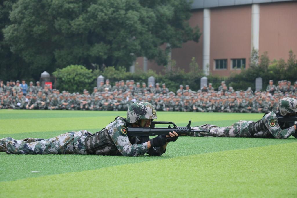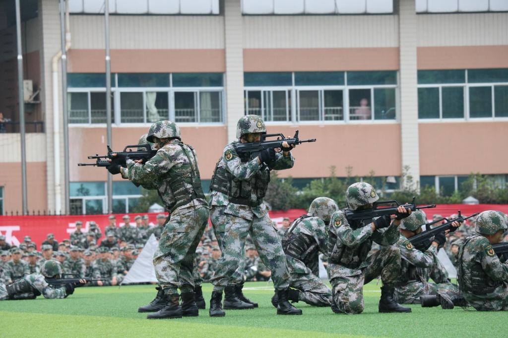考核大会开始前,首先进行了特色方队的表演。由2020级新生和学校民兵连合作排演的刺杀操、警棍盾牌术、匕首操和战术动作等特色方队赢得了阵阵掌声。