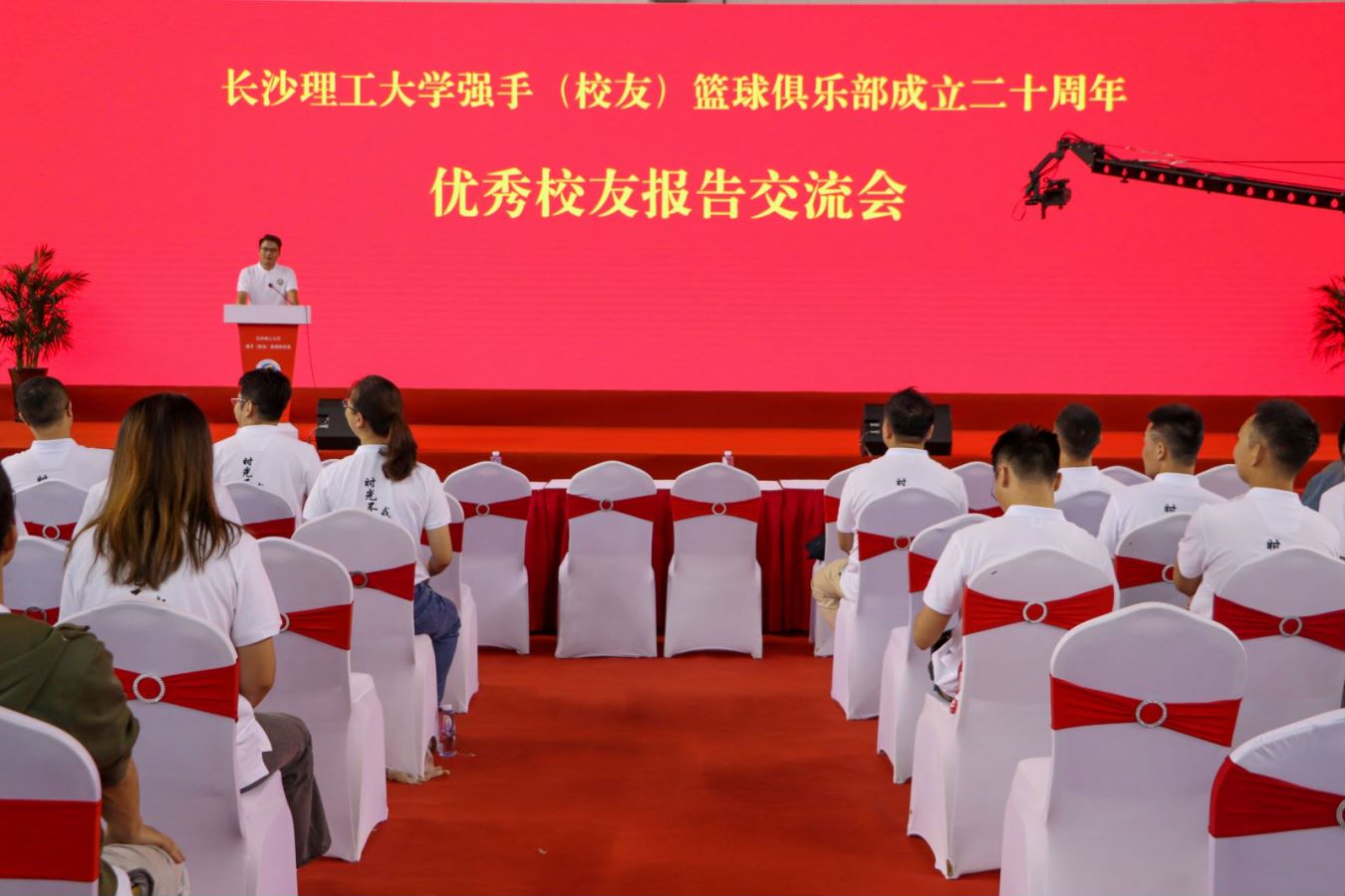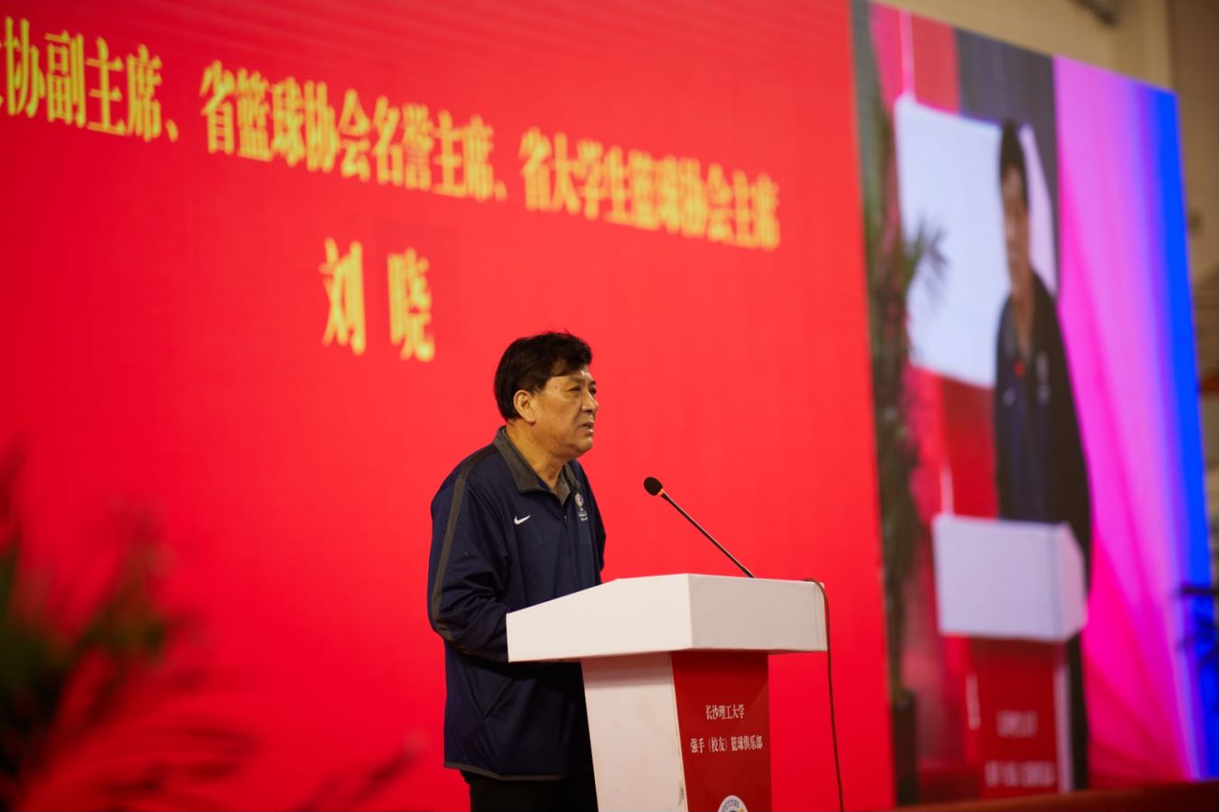 省篮协常务副主席兼秘书长王志诚和校友总会会长洪源渤分别为纪念活动致辞。省篮球协会名誉主席、省大学生篮球协会主席、william校友刘晓已经年近70,仍活跃在篮球赛场上,他勉励大家,健康的身体是工作的前提和基础,要有健康意识,也要不断提高健康水平。