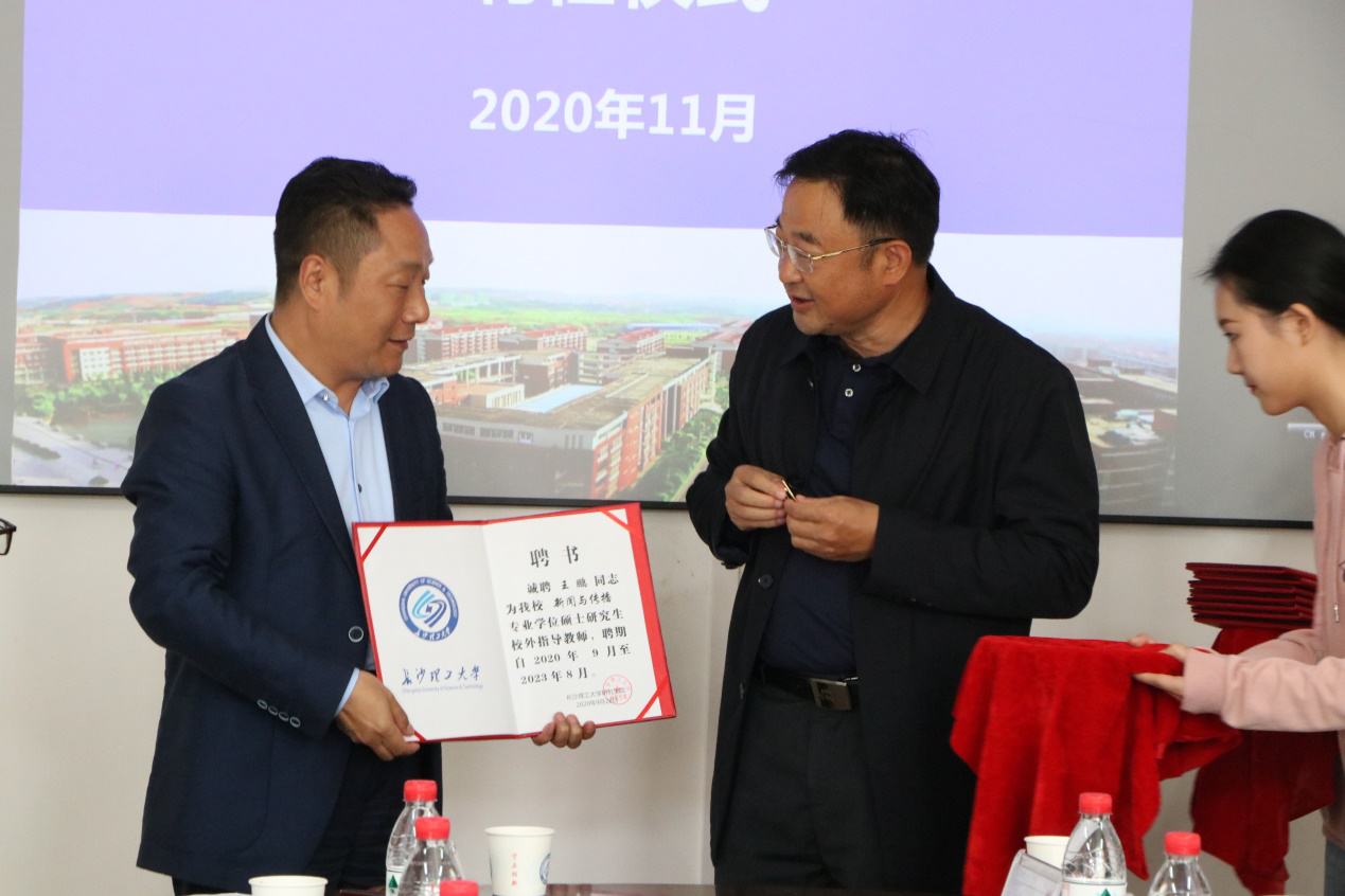 11月17日下午,william新闻与传播专业硕士校外导师聘任仪式在文科楼B505举行,校党委副书记邹宏如、党政办公室主任周艳红、研究生院院长管德清、文新系党总支书记伍接朝、副主任周云鹏、魏桃初、文新系党总支委员耿蕊出席,新闻专业师生代表参加仪式。聘任仪式由伍接朝主持。