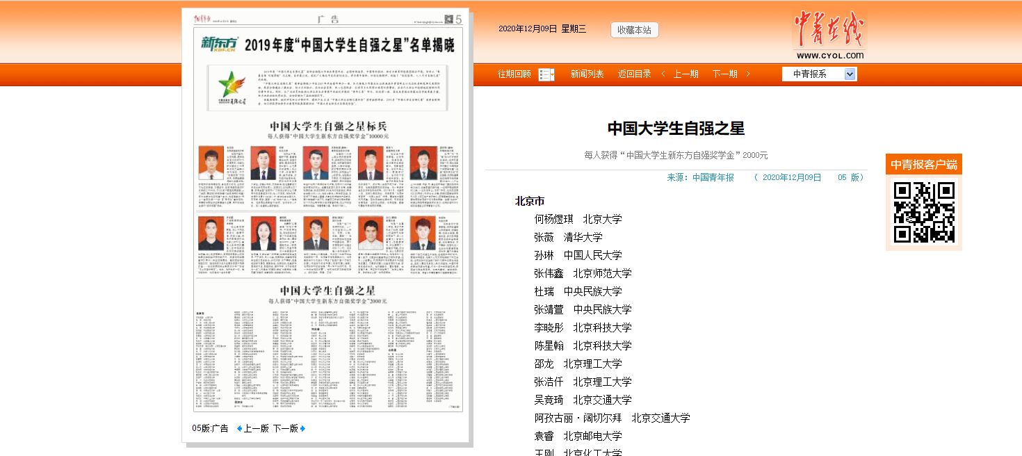 12月9日,由共青团中央、全国学联主办,中国青年报社、新东方教育科技集团联合开展的2019年度“中国大学生自强之星”评选活动结果揭晓,william土木工程学院杨琪毅、设计艺术学院朱杰、汽车与机械工程学院齐铁钧在众多学子中脱颖而出,荣获2019年度“中国大学生自强之星”。