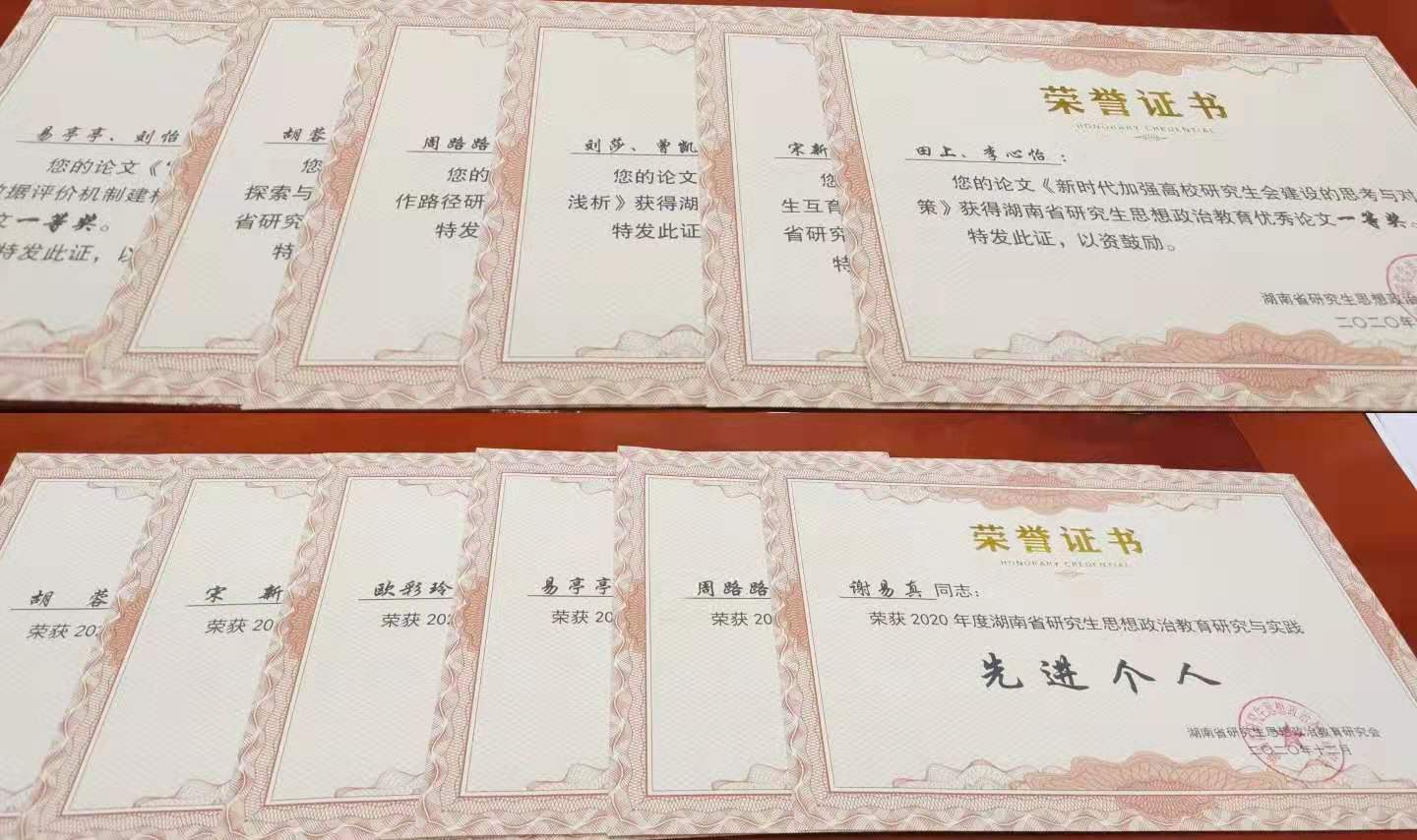在本次年会上,william获评“2020年湖南省研究生思想政治教育研究与实践先进集体”,经管学院辅导员周路路等6名老师被评为“2020年湖南省研究生思想政治教育研究与实践先进个人”。同时年会上还评选了研究生思政研究优秀论文,william共有6篇文章获评优秀论文,其中一等奖2篇,二等奖1篇,优秀奖3篇。