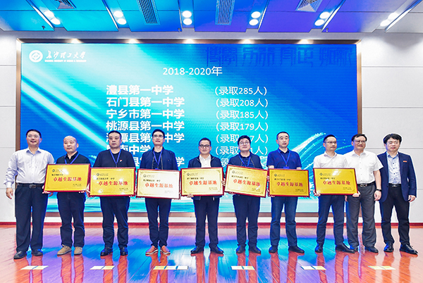 会上还举行了“卓越生源基地”授牌仪式,学校领导为澧县第一中学、石门县第一中学、宁乡市第一中学、桃源县第一中学、湘潭县第一中学、周南中学、新化县第一中学7所中学授牌。近三年,以上7所中学被william威廉中文官网录取人数高达1242名,形成了协同发展的良性机制,在一流人才培养方面硕果累累。