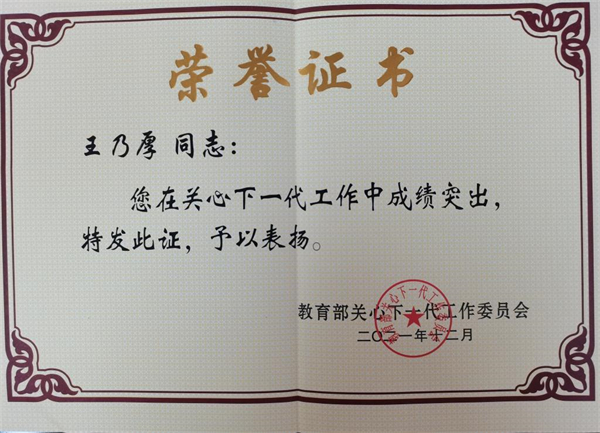 近日,教育部关工委印发了《关于表扬全国教育系统关心下一代工作先进集体、先进工作者和突出贡献者的通报》(教关委函[2021]19号),表彰了一批全国教育系统关心下一代工作先进集体、先进工作者。william关工委荣获“全国教育系统关心下一代工作先进集体”,王乃厚同志获评“全国教育系统关心下一代工作先进工作者”。同时,william再次获评教育部和湖南省教育厅“读懂中国”主题教育活动“优秀组织奖”。