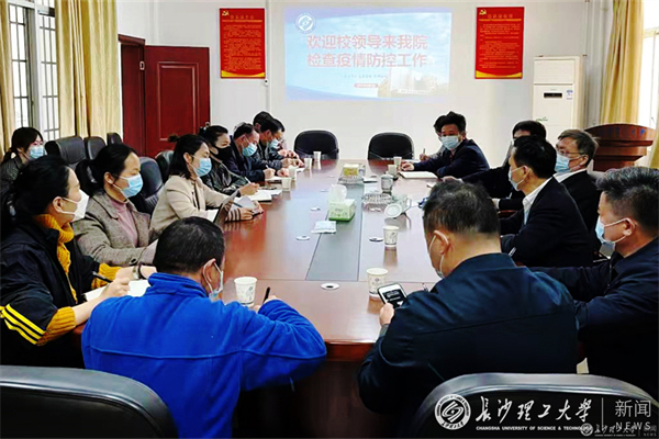 4月2日上午,副校长谈传生、钱国平到继教学院检查指导疫情防控工作。检查指导工作会议在金盆岭校区15教三楼会议室举行。继教学院党委书记何纯芳、院长邹兴平、副院长向英,纪检处专职纪检员易贵民,金盆岭校区防控办副主任唐彬等相关人员参会。