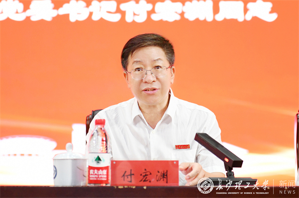 付宏渊指出,广大教师要热爱教育,潜心培育有情怀的时代新人;要挚爱学术,不懈探求有情怀的大学问;要笃爱讲台,积极打造有情怀的大课堂;要关爱学生,努力成为有情怀的大先生。他强调,培育有情怀的时代新人,重中之重是要以坚定的理想信念筑牢精神之基,坚定青年学生对马克思主义的信仰,对社会主义和共产主义的信念,对中国特色社会主义道路、理论、制度、文化的自信。探求有情怀的大学问,就要始终心怀“国之大者”,自觉履行高水平科技自立自强的使命担当,为创新型国家、科技强国、“三高四新”战略定位和使命任务作出积极贡献。打造有情怀的大课堂,就要敬畏课堂,处理好教学与科研的关系,坚持科研走在教学前头,引领教学、服务教学,充分运用信息化技术,让人文情怀牵手科学精神,促进高素质复合型人才的培养。成为有情怀的大先生,就要做学生为学、为事、为人的示范,促进学生成长为全面发展的人。他勉励广大教师,要自觉涵养教师情怀,坚持“育人者先自育”“教育者先受教”,坚持教书与育人相统一,始终围绕学生、关照学生、服务学生,始终垂范高尚、追求纯粹,成为具有大学问、大情怀,塑造学生品格、品行、品味的“大先生”。