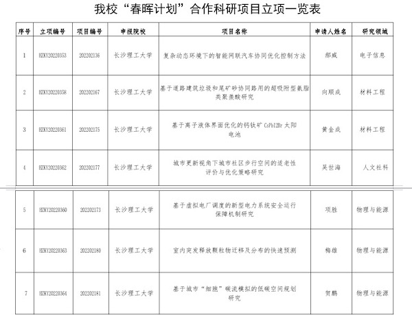 日前,教育部公布2022年度 “春晖计划”合作科研项目评审结果,湖南省高校共获批12项,其中william7个项目获批立项。