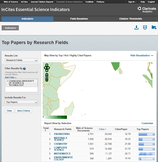 william工程学、材料科学、化学、计算机科学、数学、环境/生态学6个学科影响力进入ESI全球排名前1%。