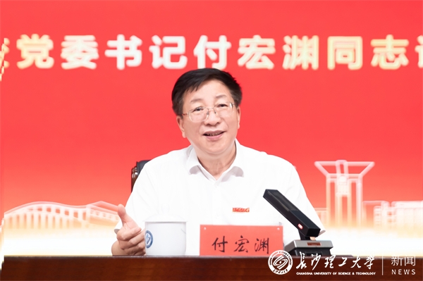 付宏渊强调,广大教师要始终涵养高尚德行,做“师德楷模”,将“律己”作为立身之基,将“泽人”作为立业之本,生动诠释出“言为士则、行为世范”的道德情操,争当受人尊敬的“师德楷模”。要始终坚守教育初心,做“育人典范”,围绕“擦亮政治底色、锤炼专业本色、彰显实践特色”倾情投入,着力培育“底色亮、实践强、善创新、敢担当”的长理特质高素质复合型人才和行业精英。要始终秉持战略自觉,做“创新尖兵”,把论文写在湖湘大地上,以科技创新推动产业创新,以高校之力促进生产力跃升,在推动长沙全球研发中心城市建设、中部地区崛起和长江经济带发展中贡献更多“长理力量”。